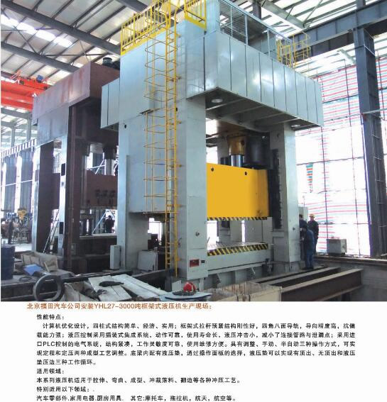 公司能夠為市場提供42大類500余個品種的標準液壓機和非標專用、精密伺服液壓機。產品廣泛應用于汽車、航天、粉末冶金、船舶、輕工、建筑、電子、家用電器等行業,并代表著我國通用液壓機的發展水平。公司生產、設計、開發的液壓機產品完全能夠滿足國內不同用戶多層次的需要。